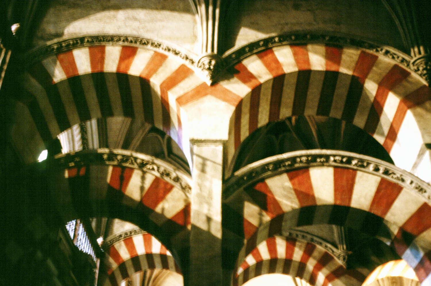 interior, hypostyle hall, detail of arcade in al-Mansur's addition, 1990