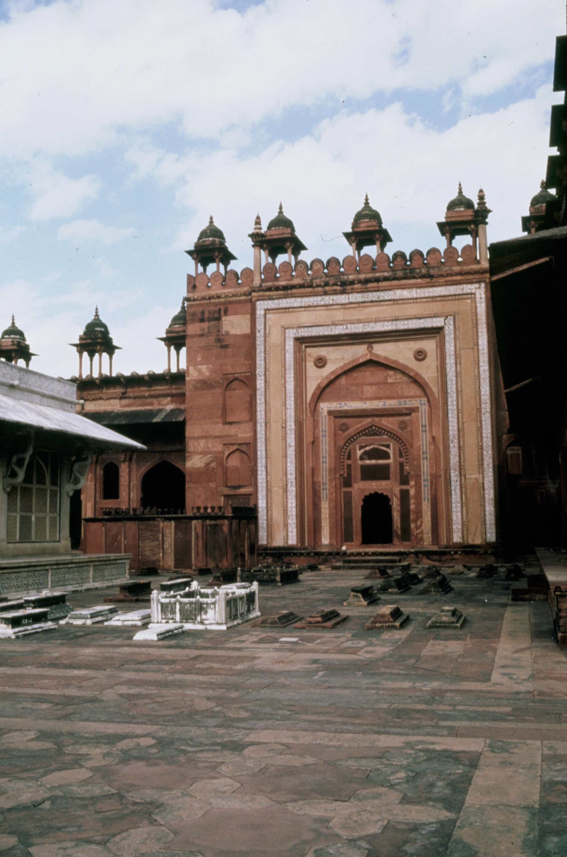 exterior, courtyard, north entrance gate, between tomb and khanqah of Shaykh Salim Chisti, ca. 1981