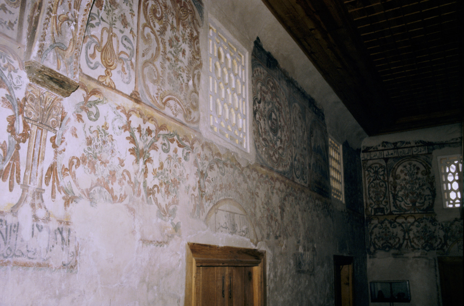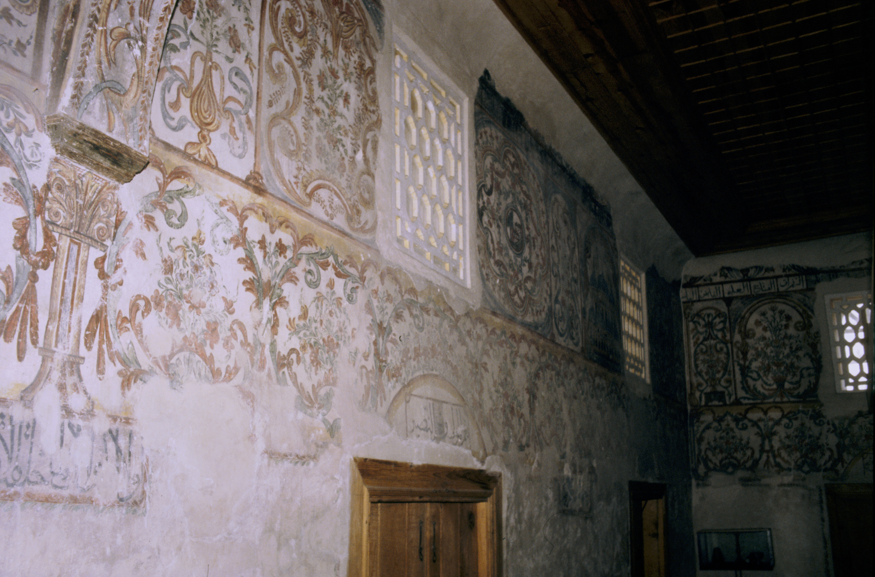 interior, detail of prayer hall wall painting, 1992
