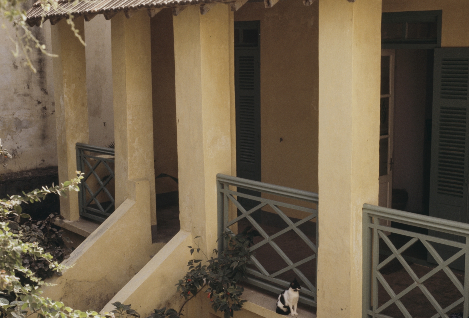 exterior, detail of the front porch of a house, 1988