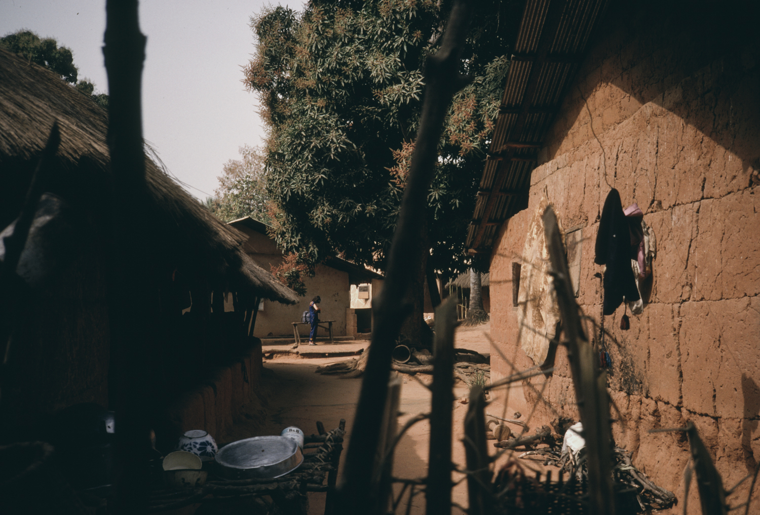 general view, exterior view of typical houses, clay walls with thatched roofs, 1988