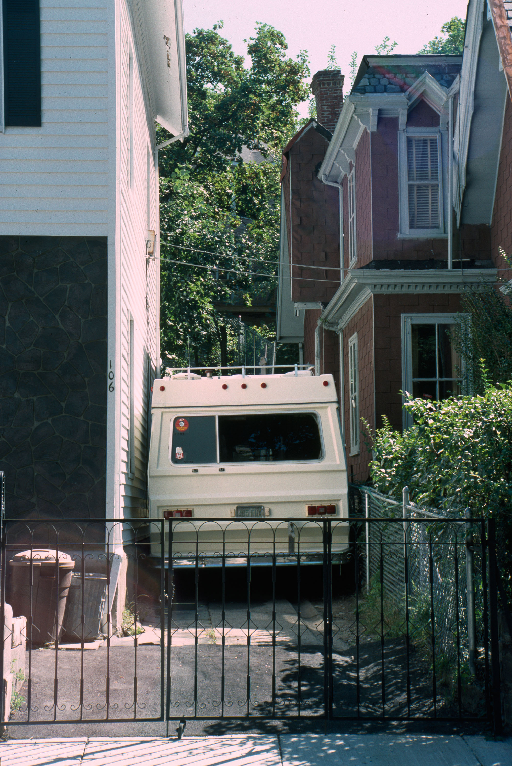 Fashionable development featuring fine views, good air, proximity to city. Situated near the only land route to and from Boston. general view, driveway between two houses, 1987
