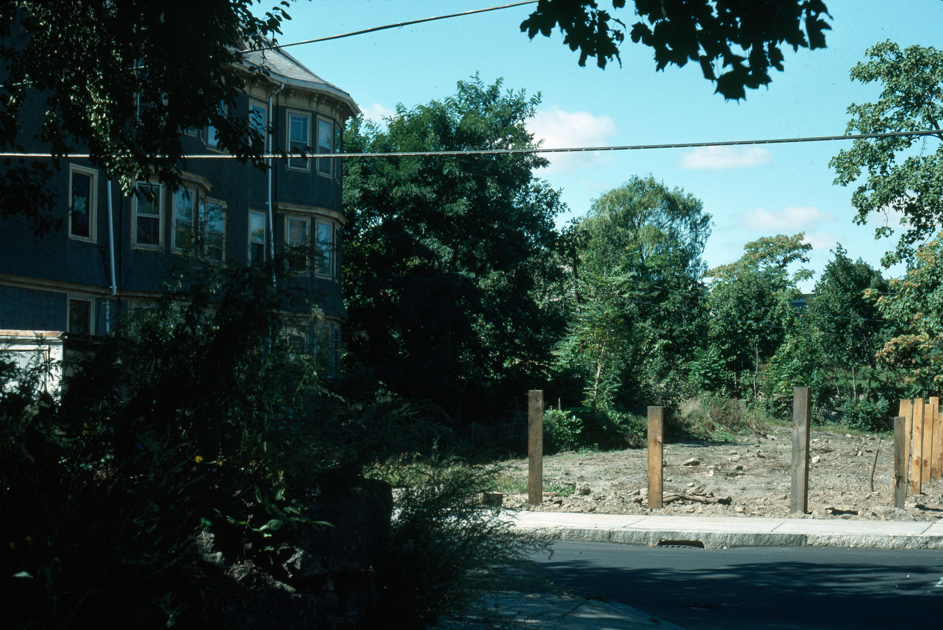 Fashionable development featuring fine views, good air, proximity to city. Situated near the only land route to and from Boston. general view, vacant lot, 1987