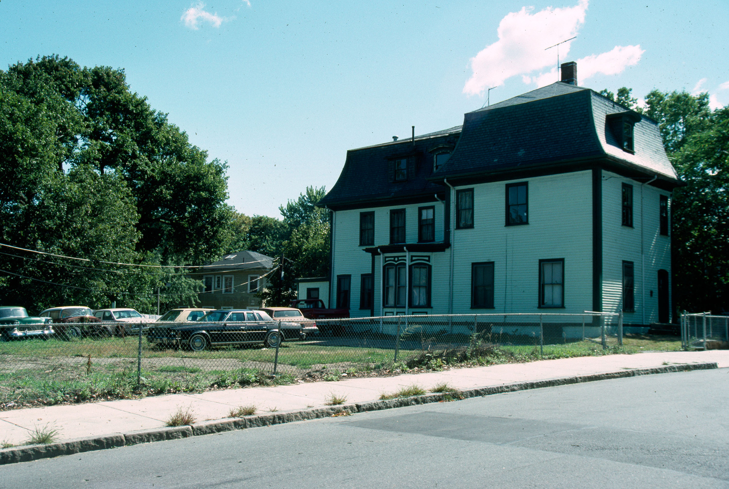 Fashionable development featuring fine views, good air, proximity to city. Situated near the only land route to and from Boston. general view, vacant lot with house adjacent, 1987