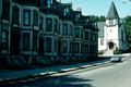 Fashionable development featuring fine views, good air, proximity to city. Situated near the only land route to and from Boston. general view, row houses and church on Cedar Street, 1987
