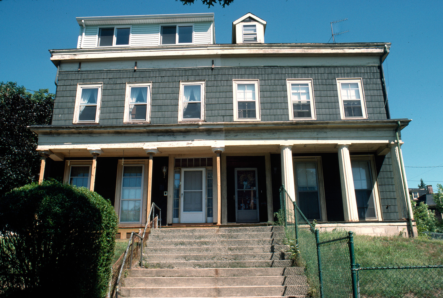 Early settlement stimulated by entrepreneurial opportunities of suburban location. general view, multifamily house at 1-3 Harvard Place, 1988