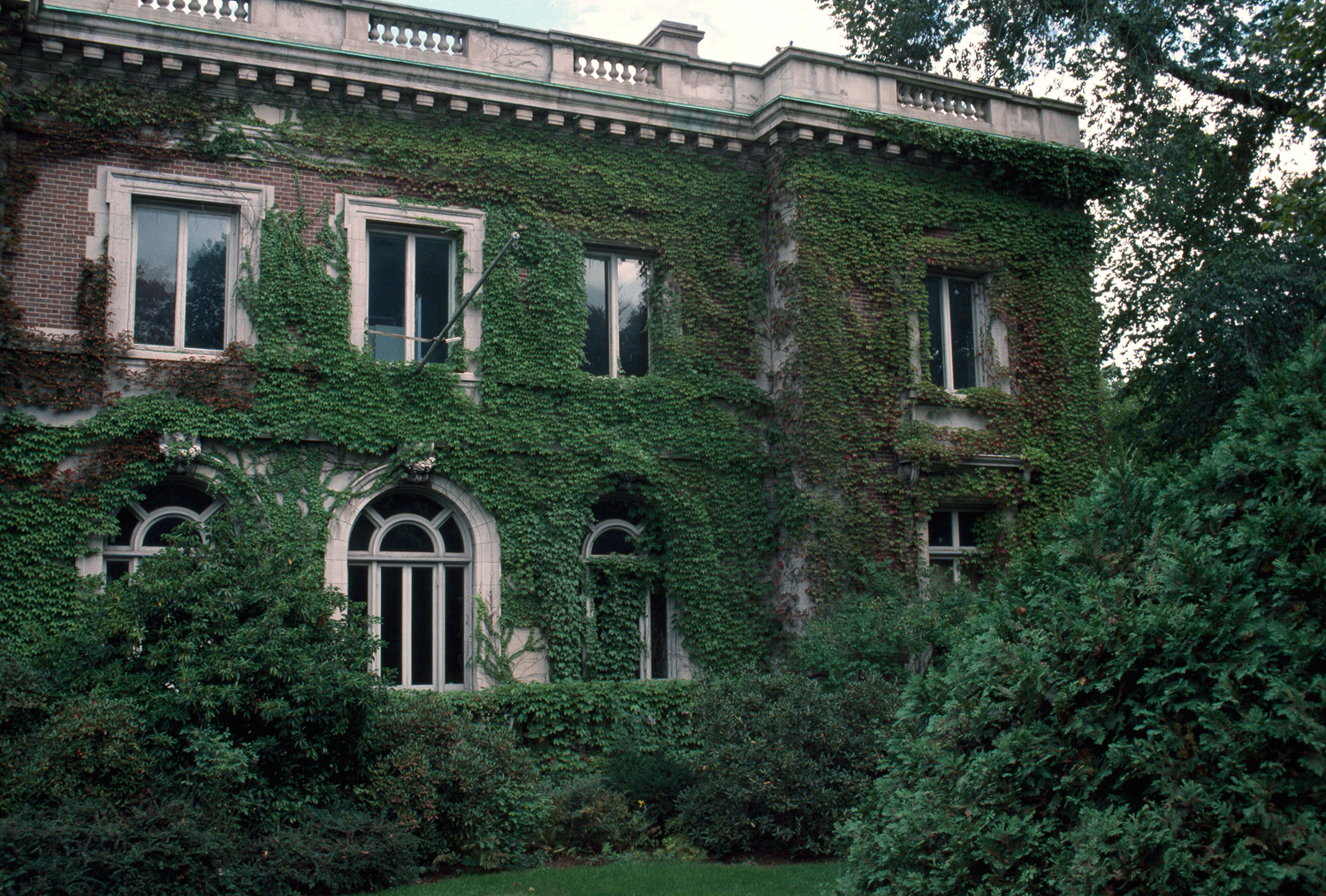 Grid pattern development around Longwood Square, noted for imported trees; design and use restrictions. David Sears, developer-builder, 1840s and 1850s. general view, partial facade of Wheelock College building, 1988