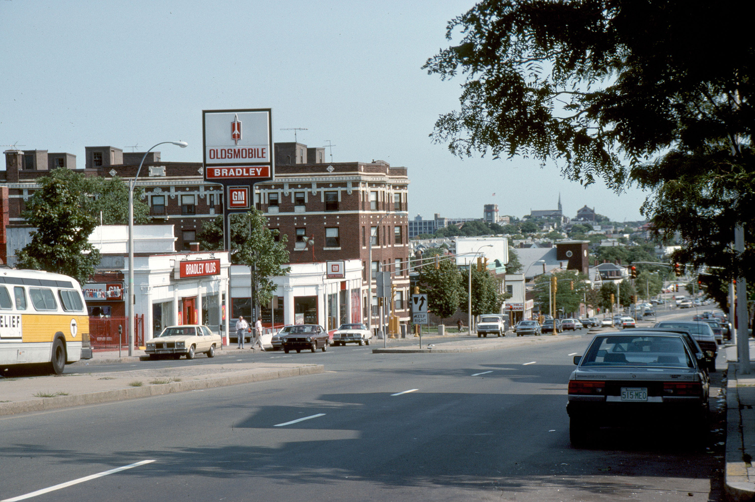 Post Civil War settlement stimulated by frequent commuter service (59 week-day trains by 1886). general view, commercial buildings on Broadway Avenue, 1988