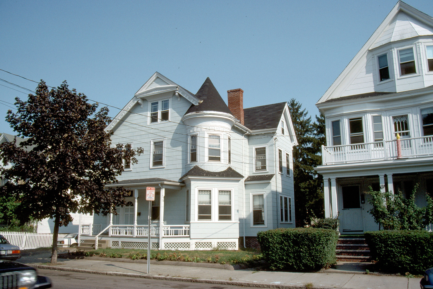 Post Civil War settlement stimulated by frequent commuter service (59 week-day trains by 1886). general view, two houses, 1988