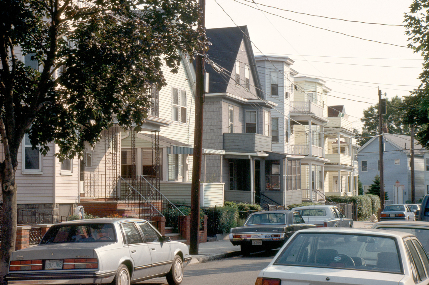Post Civil War settlement stimulated by frequent commuter service (59 week-day trains by 1886). general view, houses on Partridge Street, 1988