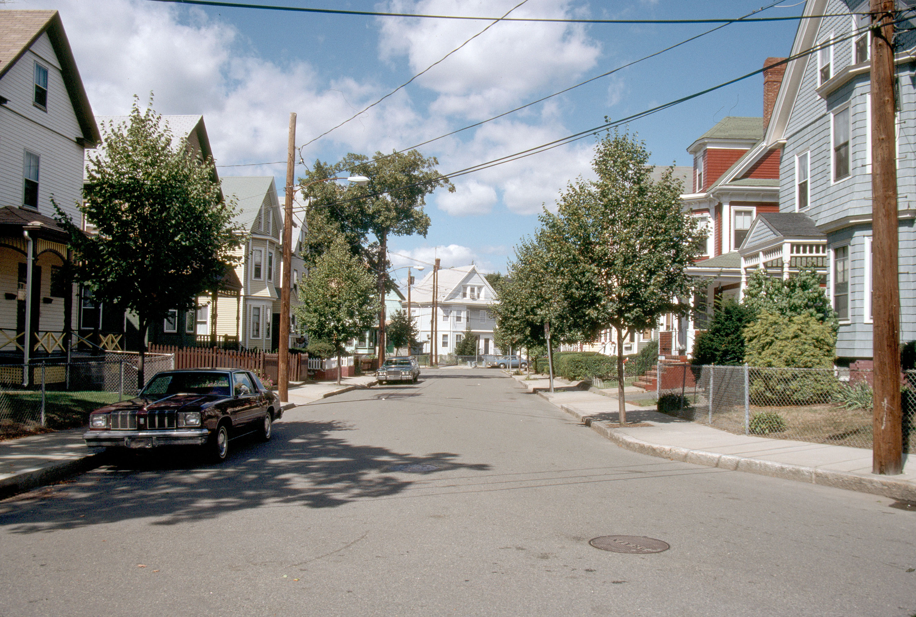 Post Civil War settlement stimulated by frequent commuter service (59 week-day trains by 1886). general view, residential street, 1988