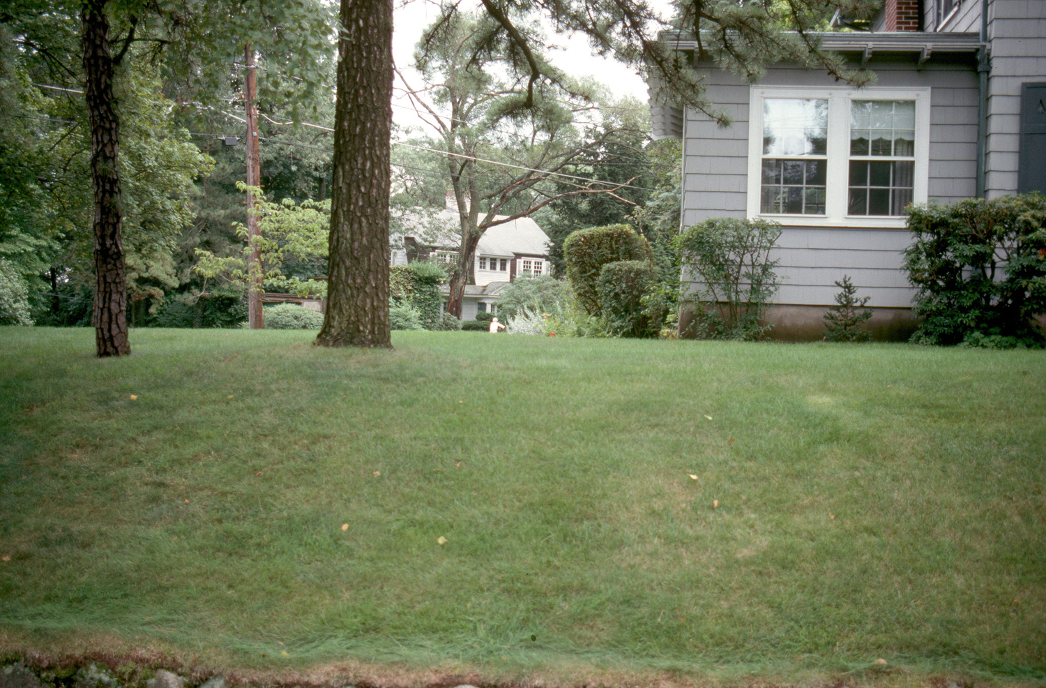 Picturesque plan for fashionable 300-acre subdivision, including Cochituate aqueduct as a natural feature; designed by early advocate of metropolitan park system. general view, front yard, 1988