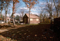 Model community of worker housing, not completed. general view, outbuilding, 1987