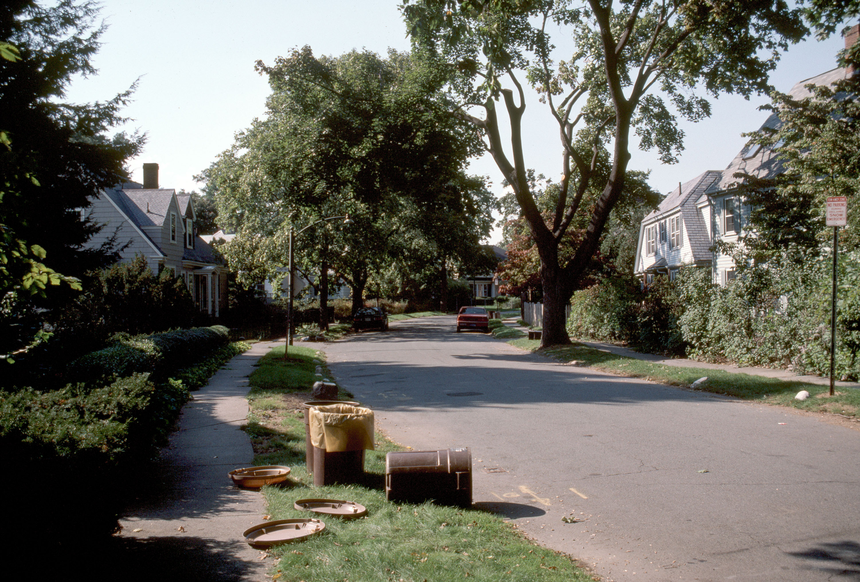 Suburbs, Architecture, Modern --20th century, City planning, Architecture, Domestic --United States, Subdivisions, Hubbard, Henry Vincent, 1875-1947, Automobiles, Fences, Houses, Traffic signs, Trash cans, Streetscapes, Neighborhoods, Sidewalks, Single-family dwellings, Boston Suburbs - Chapter 3 - 1910-1920