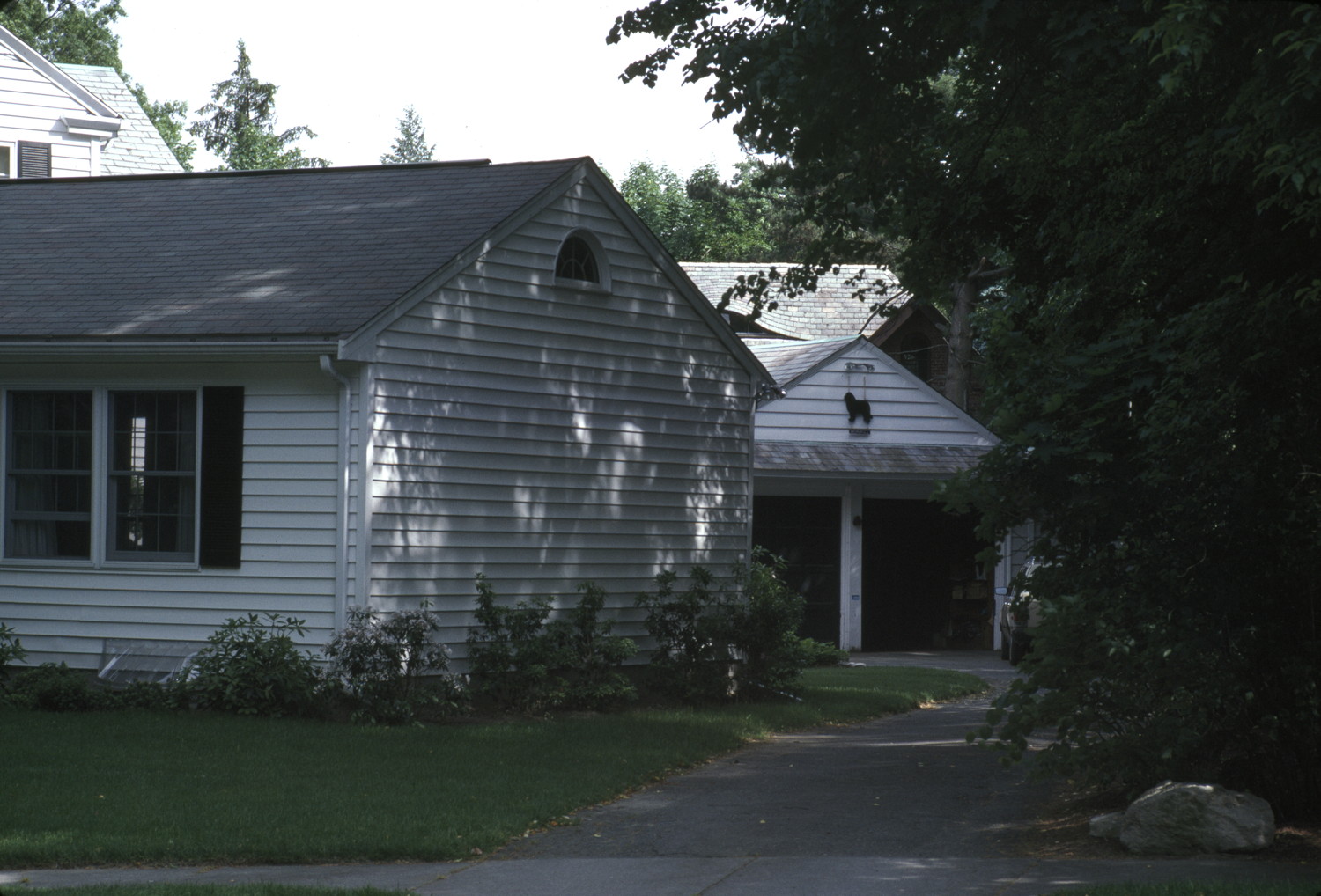 First large Newton subdivision without access to public transportation; architectural and social restrictions. general view, house, garage, 1987
