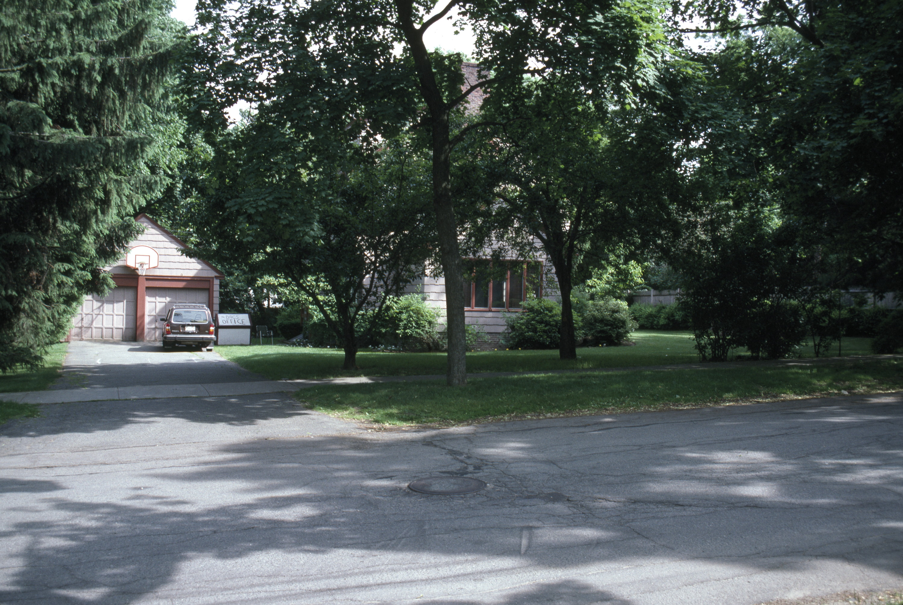 First large Newton subdivision without access to public transportation; architectural and social restrictions. general view, driveway, garage, house, 1987