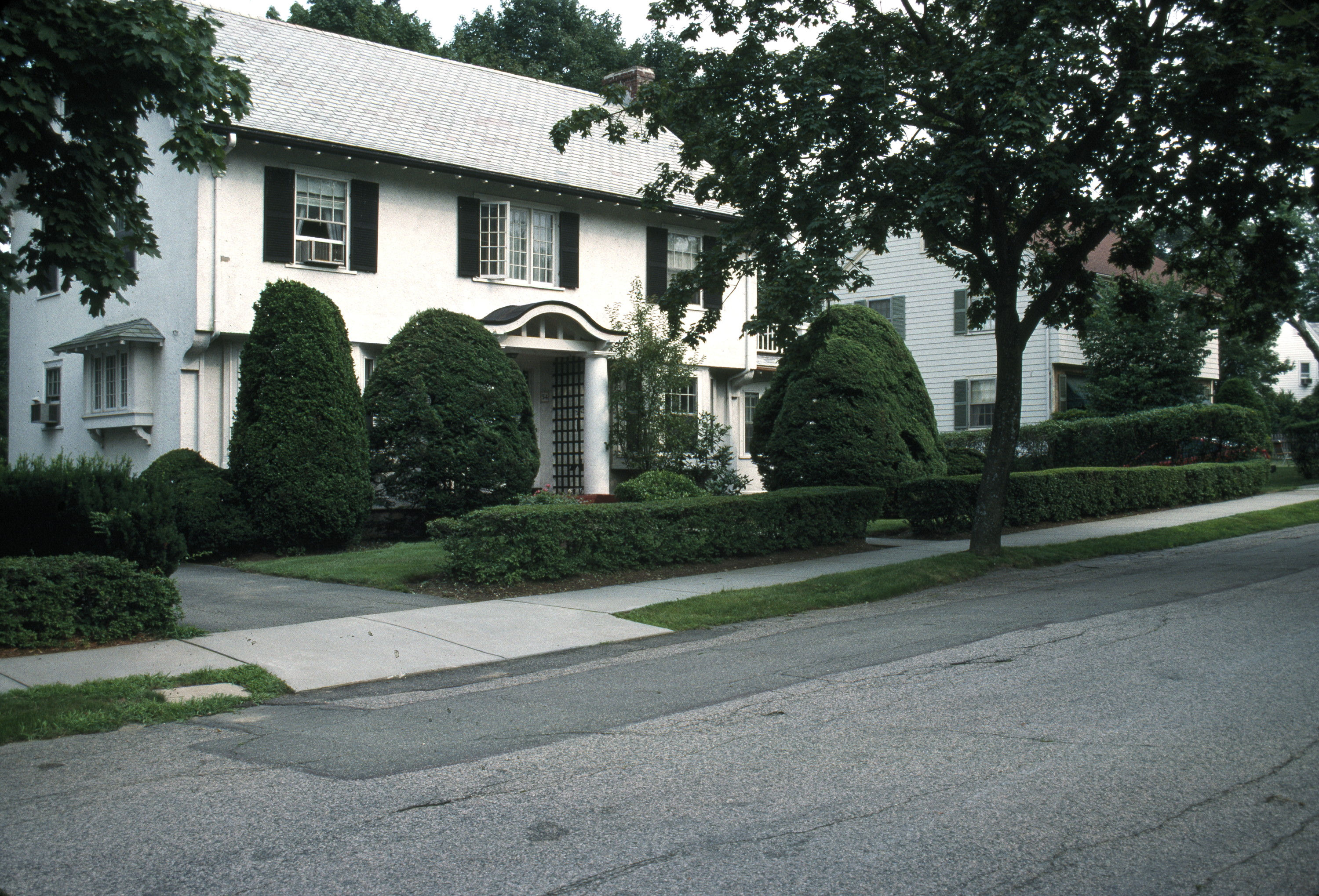Subdivision of former estate near Boston College, featuring modern electric houses. general view, street view of house, 1988