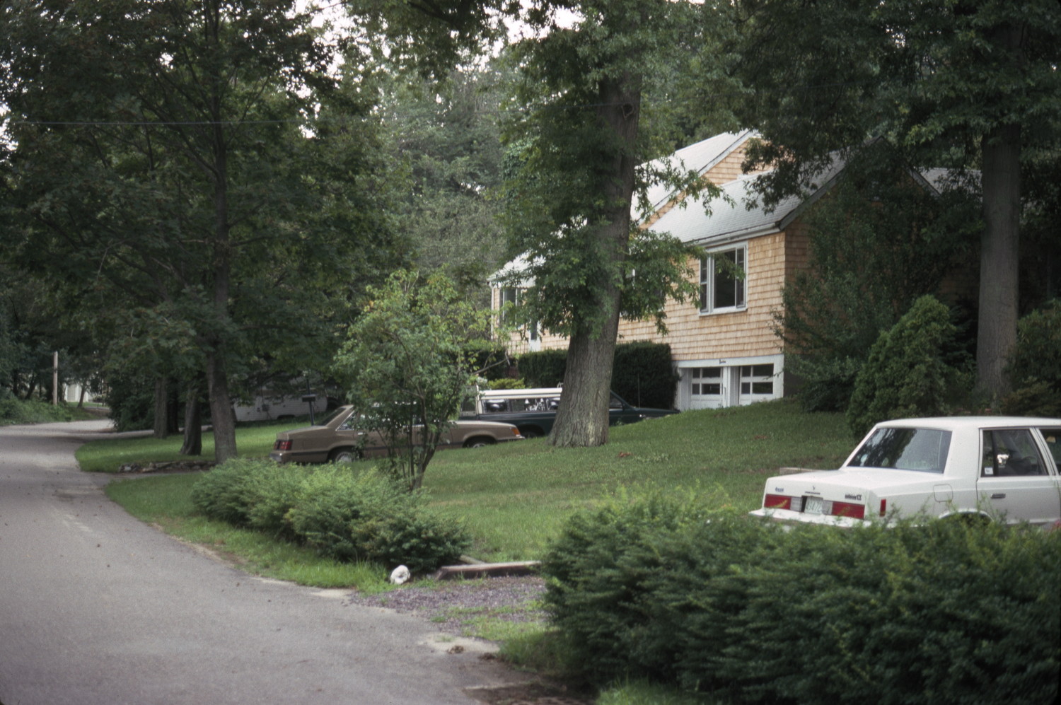 Subdivision of curving streets along hillside; recreation facilities; park planned but not built. general view, house viewed from street, 1988