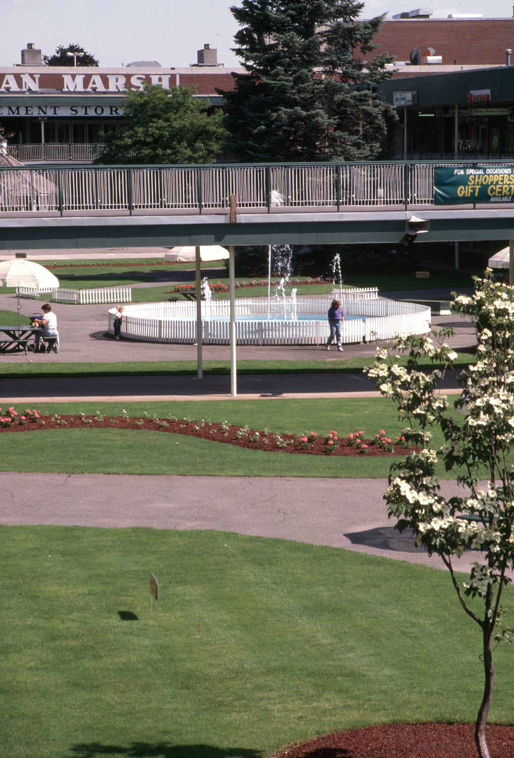 Shopping malls, Stores, Retail, Commerce, Shopping centers, Complexes, Architecture, Modern --20th century, Framingham (Mass.), Fountains, Courtyards, Jordan, Marsh and Company, Boston Suburbs - Chapter 5 - 1940-1960