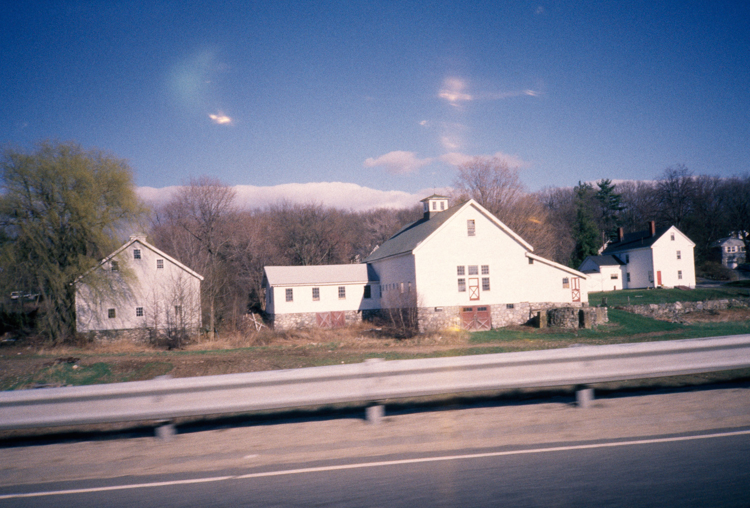 Route 128, opened as a four lane highway 1951; first multi-lane circumferential highway in metropolitan area; located at a 10-mile radius from Boston. general view, houses along the side of Route 128, 1987