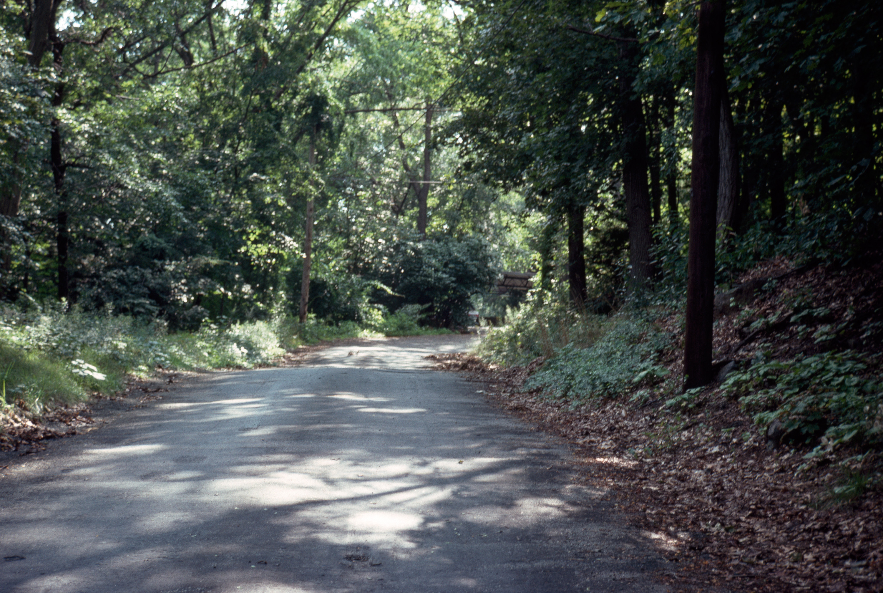 Boston Suburbs Project (Final, October 1988) general view, Snake Hill Road surrounded by trees, 1987