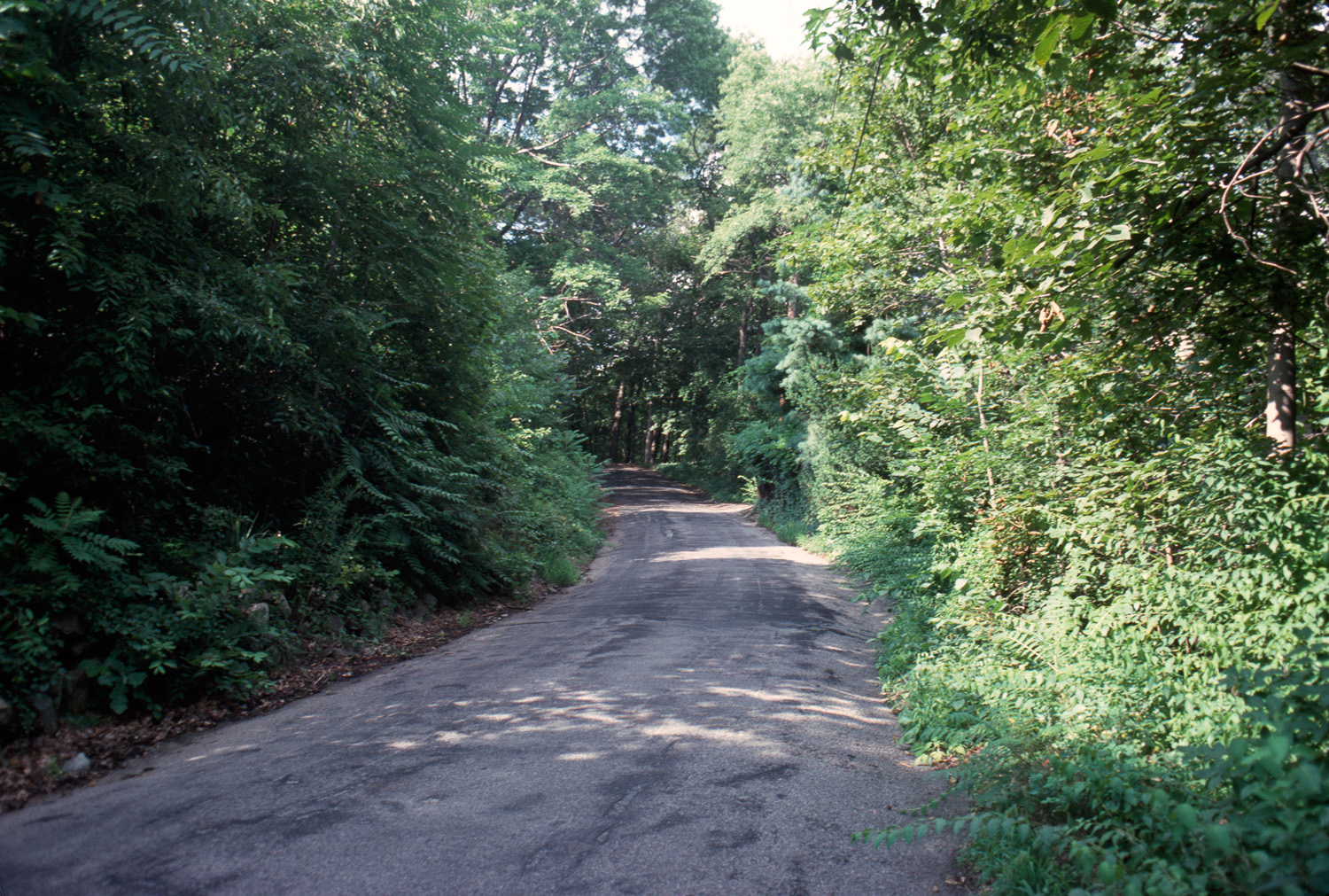 Boston Suburbs Project (Final, October 1988) general view, stretch of Snake Hill Road seen through the trees, 1987