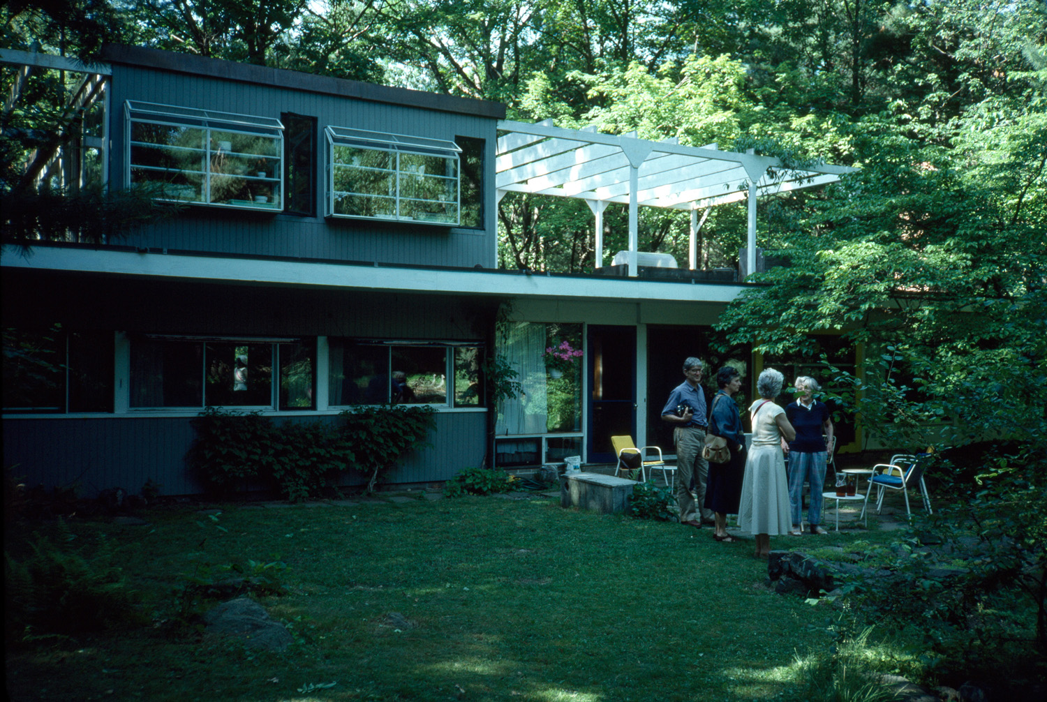 Suburbs, Architecture, Modern --20th century, Housing developments, Architecture, Domestic --United States, Modular construction, Lexington (Mass.), Residential districts, Outdoor furniture, Houses, Pergolas, Yards, Oriel windows, Decks (uncovered spaces), People, Single-family dwellings, Picture windows, Boston Suburbs - Chapter 5 - 1940-1960