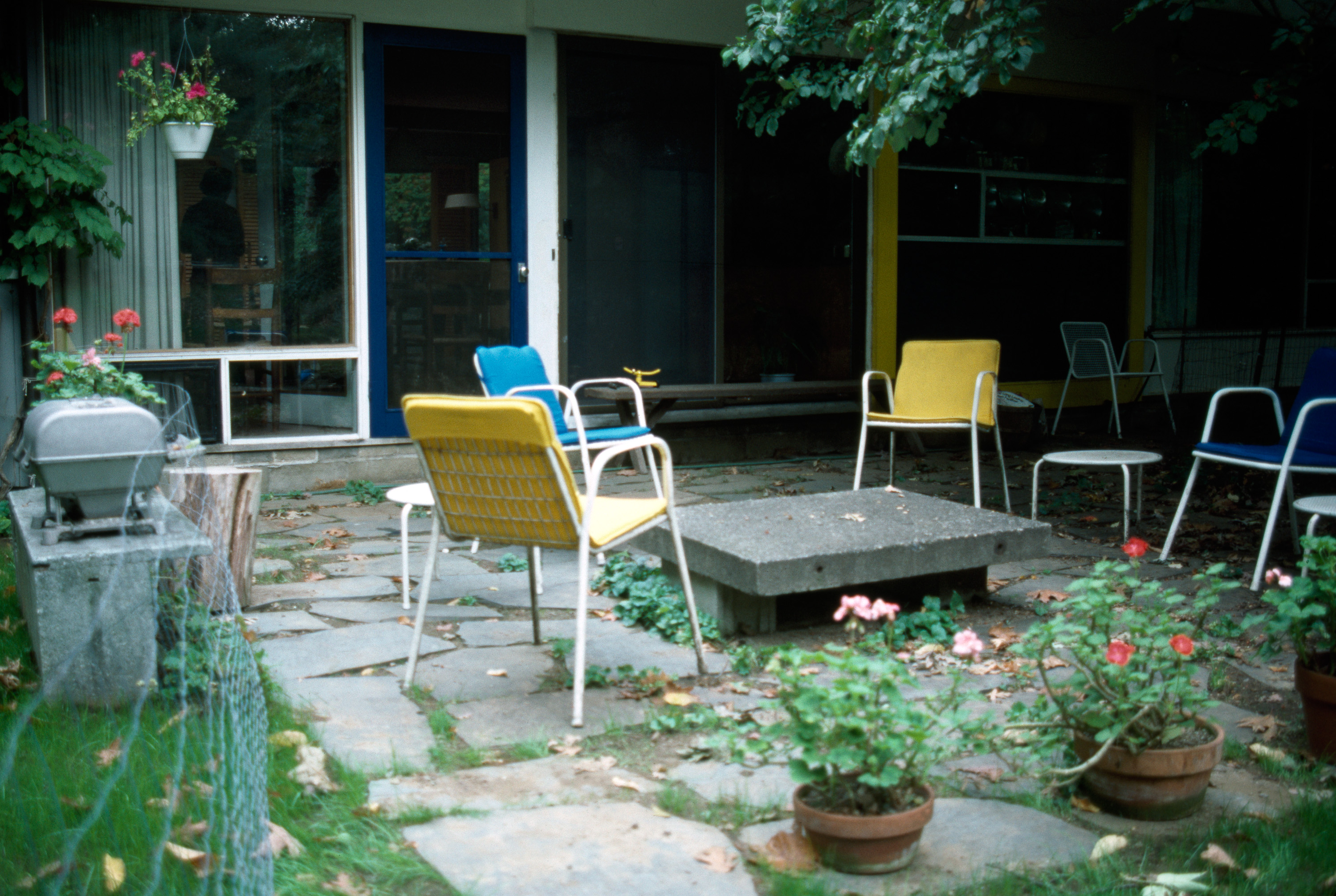 Suburbs, Architecture, Modern --20th century, Housing developments, Architecture, Domestic --United States, Modular construction, Lexington (Mass.), Residential districts, Fences, Outdoor furniture, Houses, Concrete, Grills, Planters (containers), Patios, Slate (rock), Boston Suburbs - Chapter 5 - 1940-1960