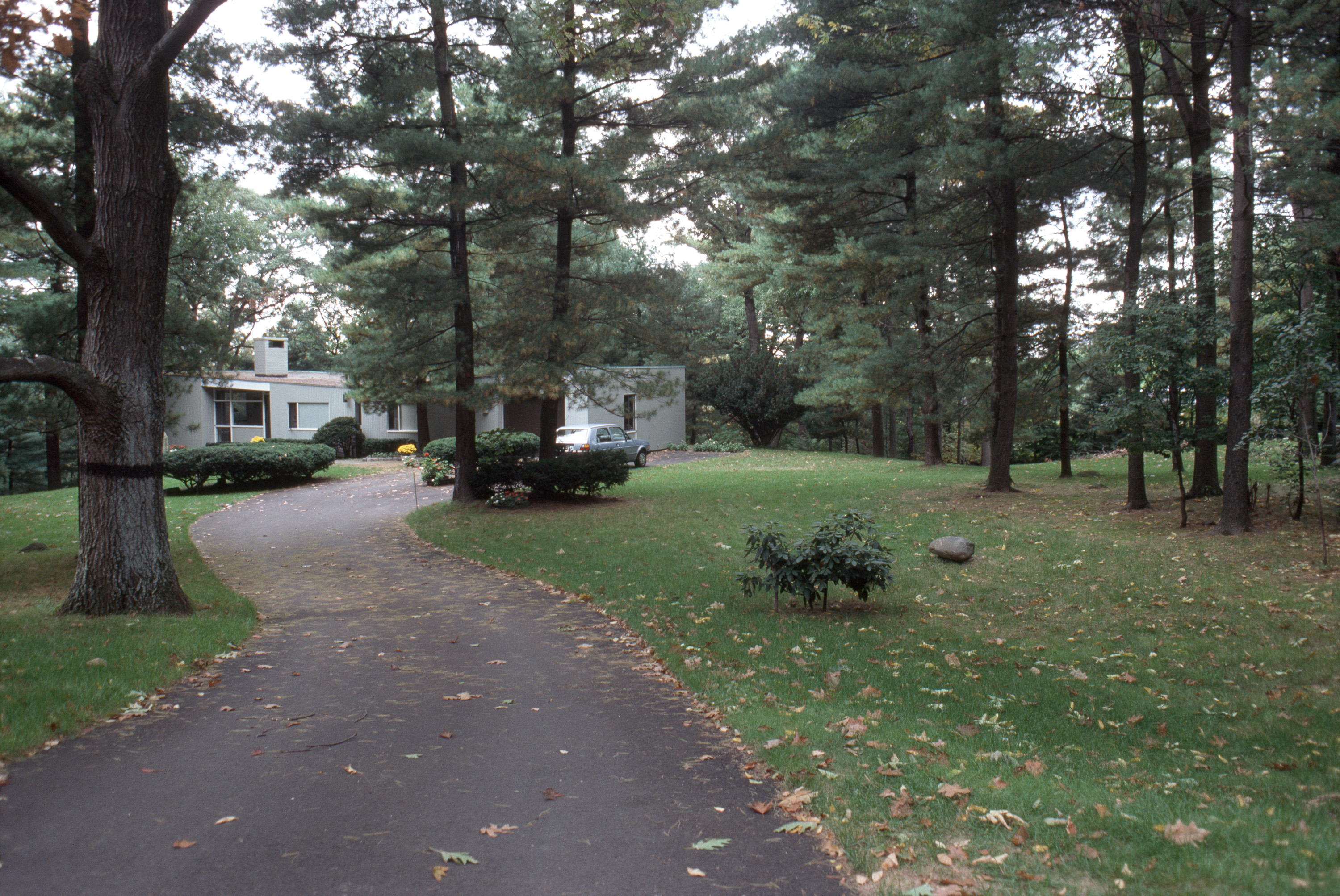 Suburbs, Architecture, Modern --20th century, Housing developments, Architecture, Domestic --United States, Modular construction, Lexington (Mass.), Residential districts, Trees, Shrubs, Chimneys, Lawns, Driveways, Flat roofs, Single-family dwellings, Picture windows, Boston Suburbs - Chapter 5 - 1940-1960