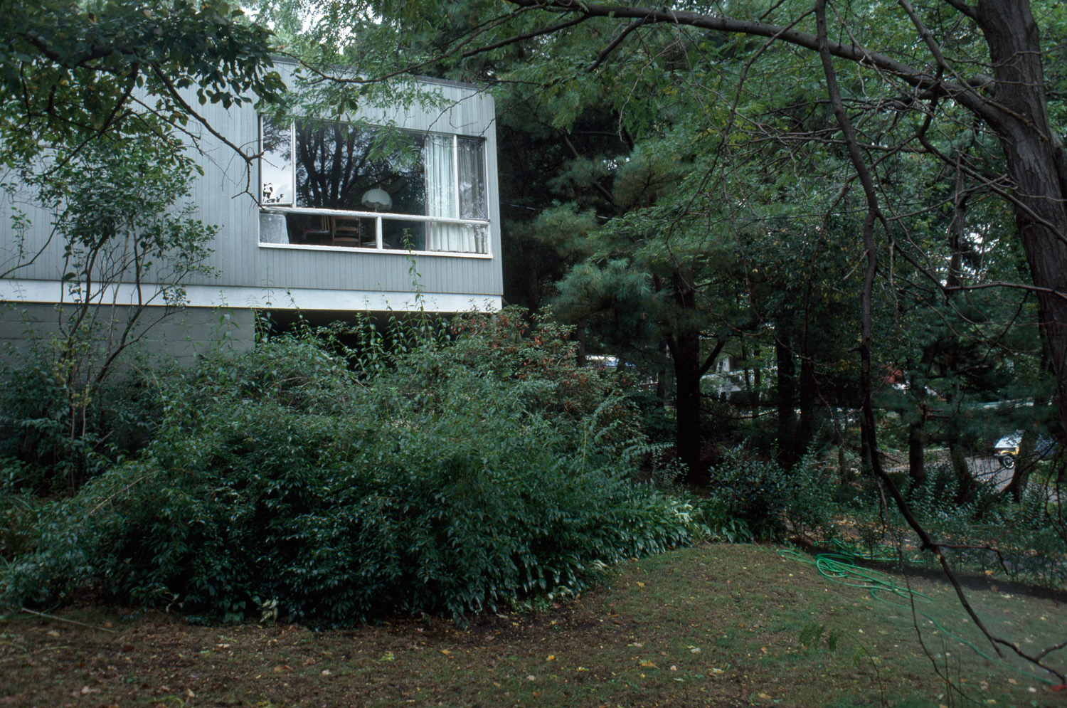 Cooperative community with common land and pool, sited to emphasize sylvan character; architectural design control. general view, corner of a two-level house, 1987