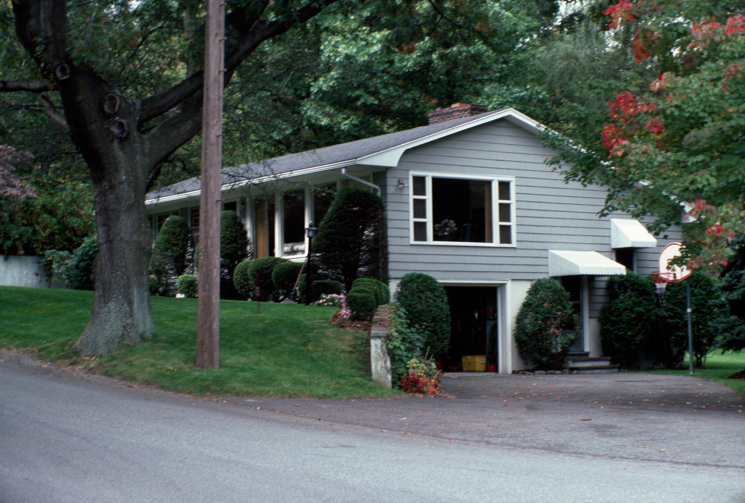 Suburbs, Architecture, Modern --20th century, Housing developments, Architecture, Domestic --United States, Modular construction, Lexington (Mass.), Residential districts, Houses, Garages, Awnings, Lawns, Basketball, Driveways, Ranch houses, Retaining walls, Single-family dwellings, Picture windows, Boston Suburbs - Chapter 5 - 1940-1960