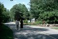Commercial version of Six Moon Hill, featuring common land and adaptable basic house designs. general view, two people walking down road, 1987