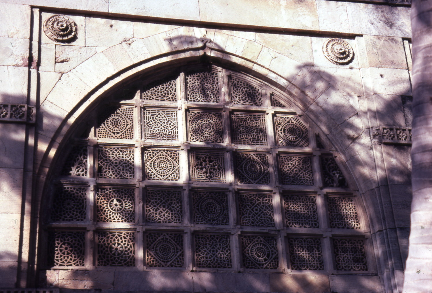exterior, detail of jali window on south wall, 1982