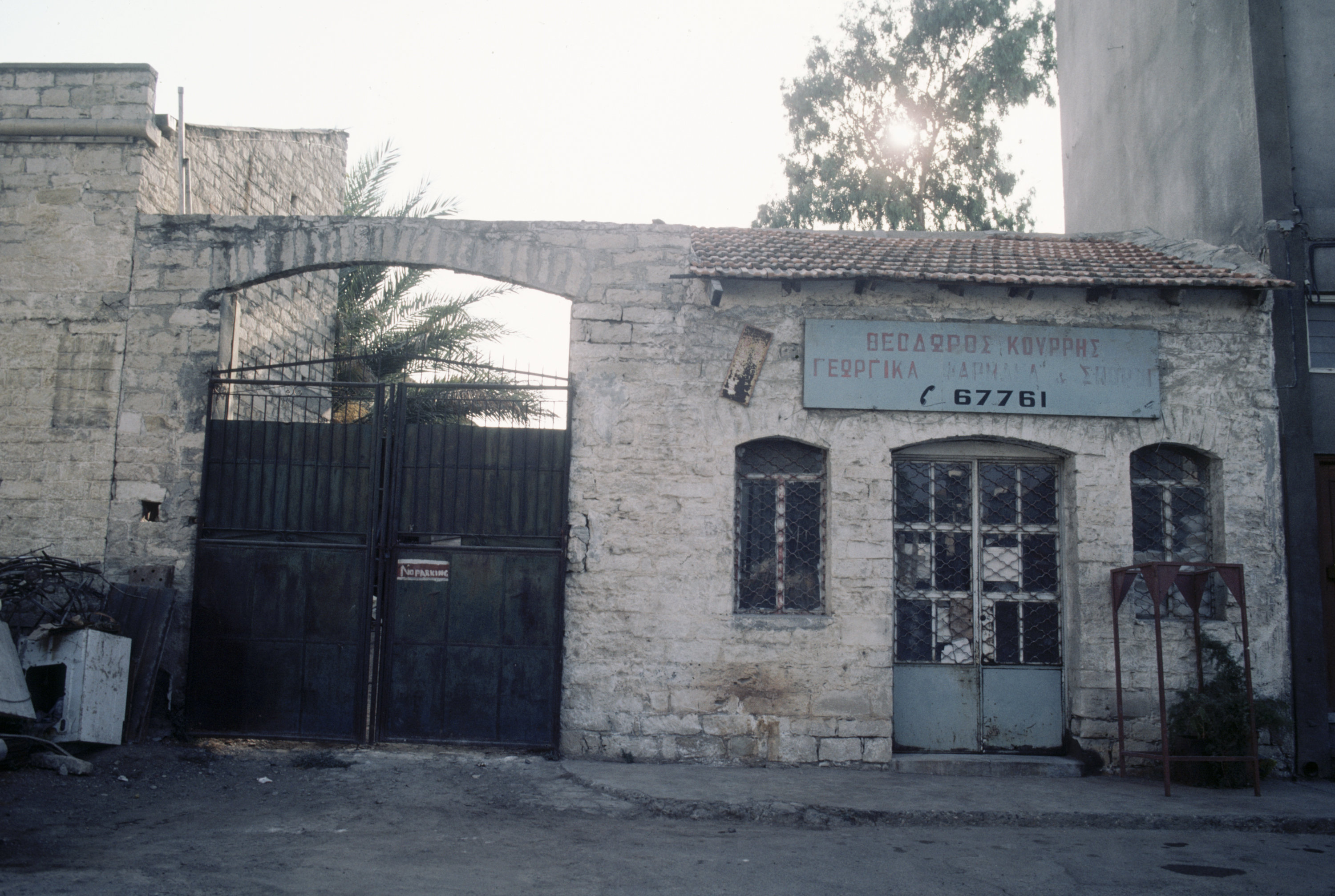 general view, facade and gate of a building on Dervish Street, near the castle, 1985