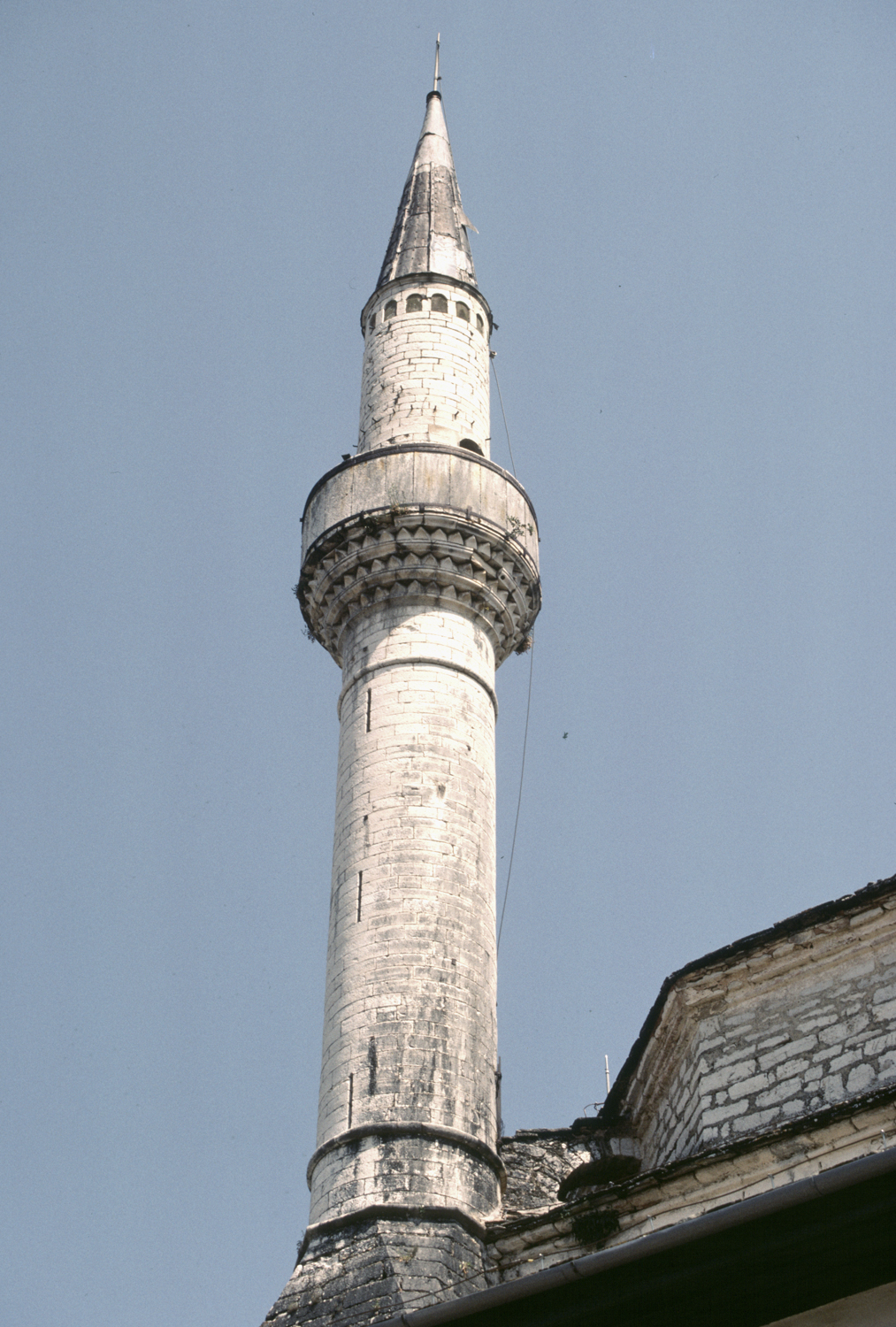 exterior, view of minaret from below, 1985
