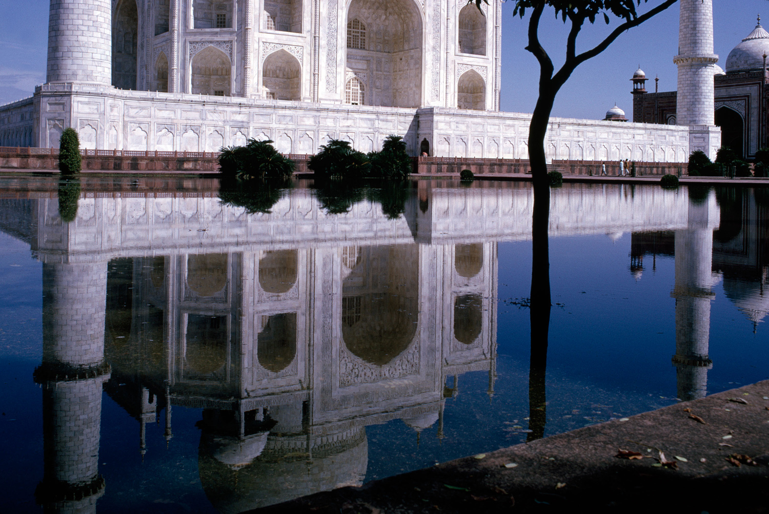 exterior, podium, tomb and minarets reflected in pool, 1965