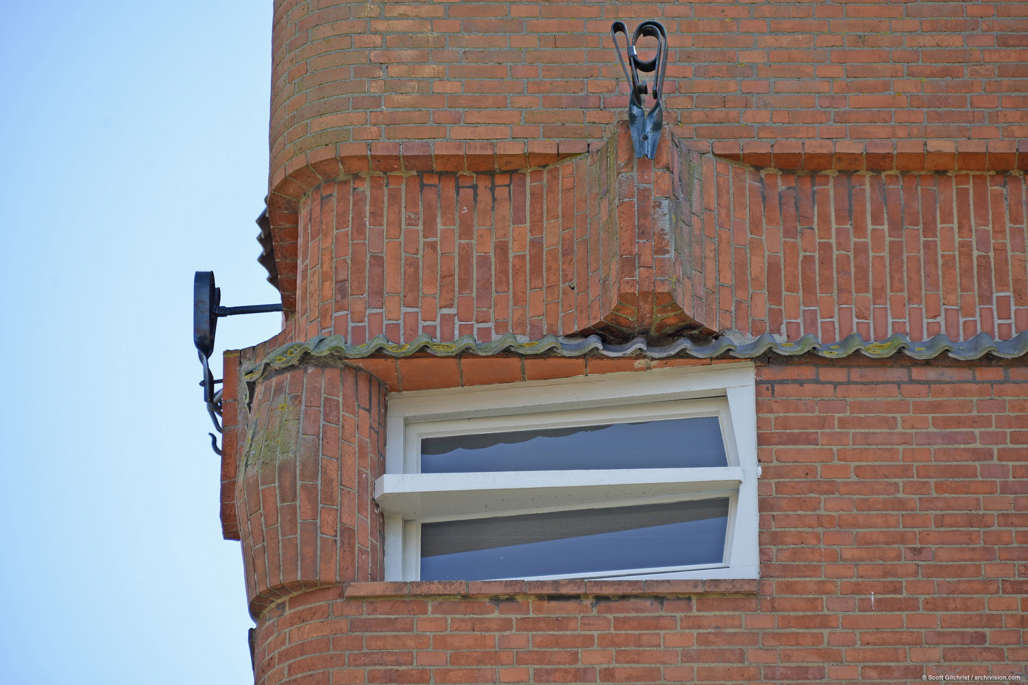 Hembrugstraat facade, northwest corner end of the housing block; This five-storey building with 102 dwellings, a post office (2 storeys), a meeting hall for residents and the annexed school is the best example of what was termed a "worker's palace" in Amsterdam. There are 18 different floor plans for the units. In 1917 the housing association Eigen Haard commissioned de Klerk again for a block in the Spaarndammerbuurt neighborhood. A few years earlier a school had been built near the triangular site on Oostzannstraat and de Klerk was required to include it in the plan. At the apex of the triangle is the post office, resembling a huge piece of sculpture. De Klerk also designed the interior of the post office; the counters, seats and even telephone booth. At the center of the triangular block are private gardens and the school playground. It is not by chance that all the formal comparisons for the building, ranging from ship to locomotive, suggest, together with associations with movement and power, an organic entity with identifiable components. Today the Museum Het Schip is housed in the post office, with an extension in the school. Source: Casciato, Maristella, ed.; The Amsterdam School, Rotterdam: 010 Publishers, 1996 (9064502463) (accessed 6/10/2014)