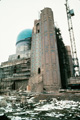 exterior, qibla iwan seen from the side; mosque under scaffolding, 1982