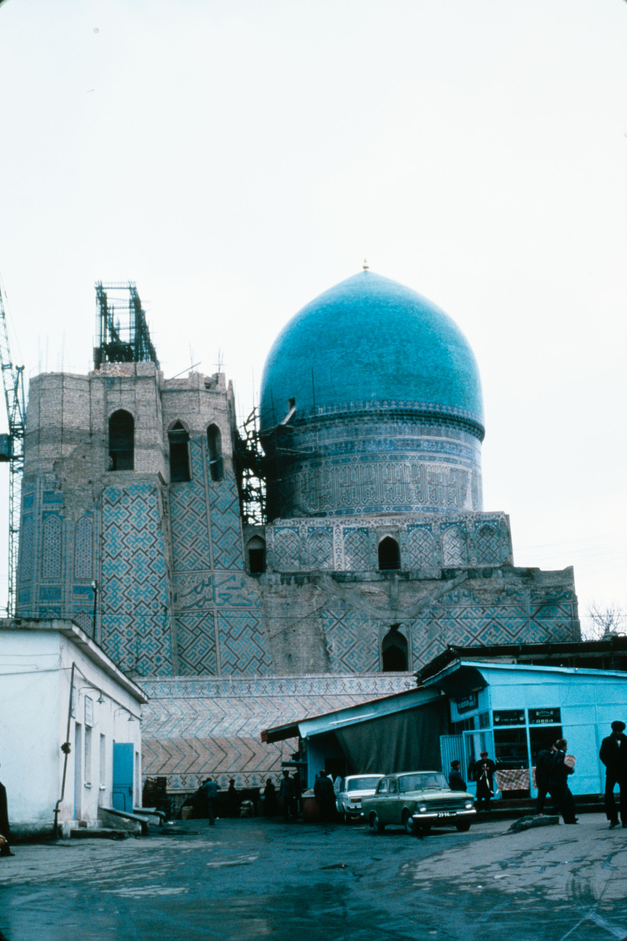 Timur, 1336-1405, Four-iwan mosques, Samarqand (Uzbekistan), Architecture, Islamic--Asia, Central, Religious architecture, Architecture, Islamic --Uzbekistan, Architecture, Timurid, Domes, Scaffolds