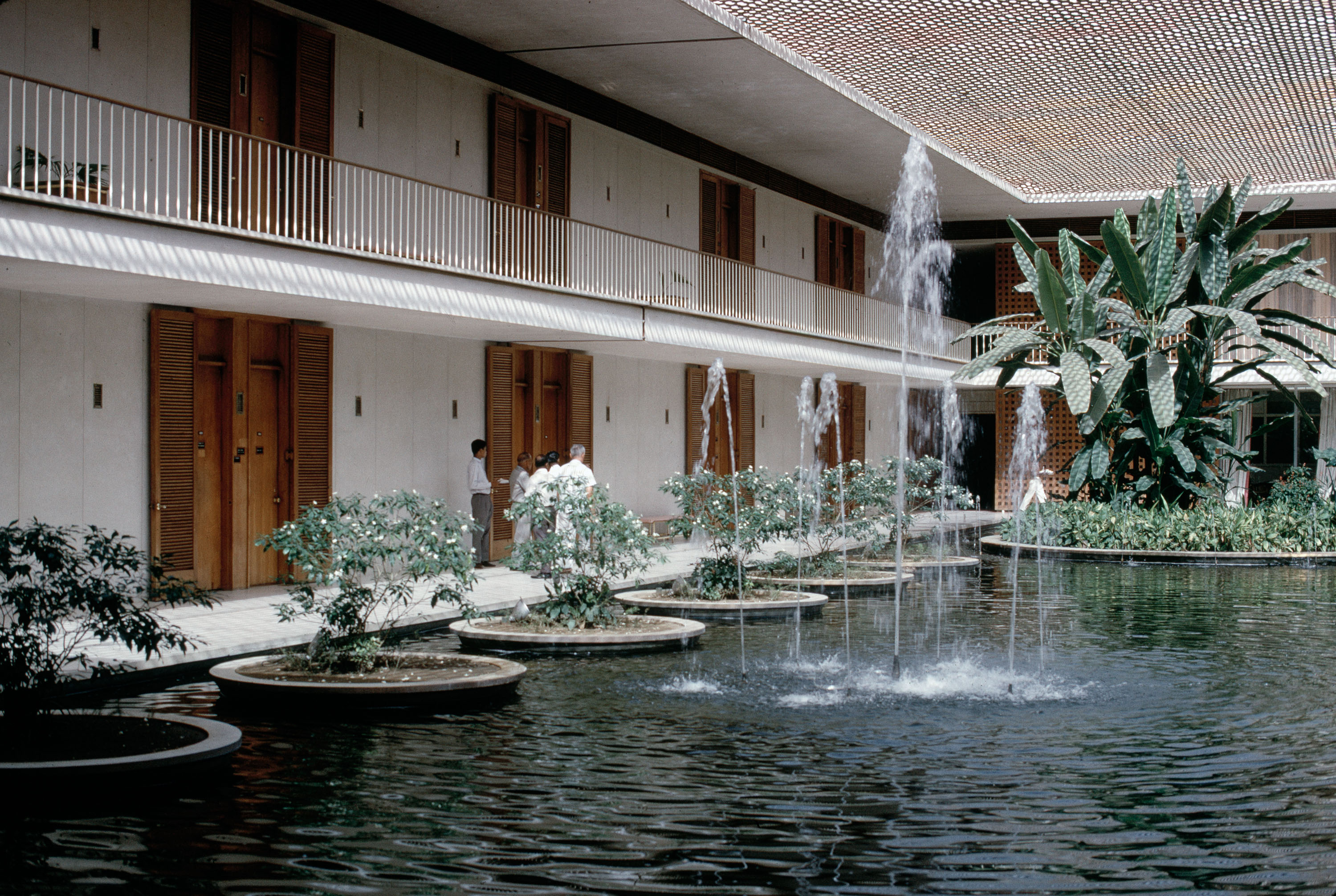 interior, courtyard pool, with fountains, 1966 Shanti Path, Chanakyapuri, New Delhi 110021