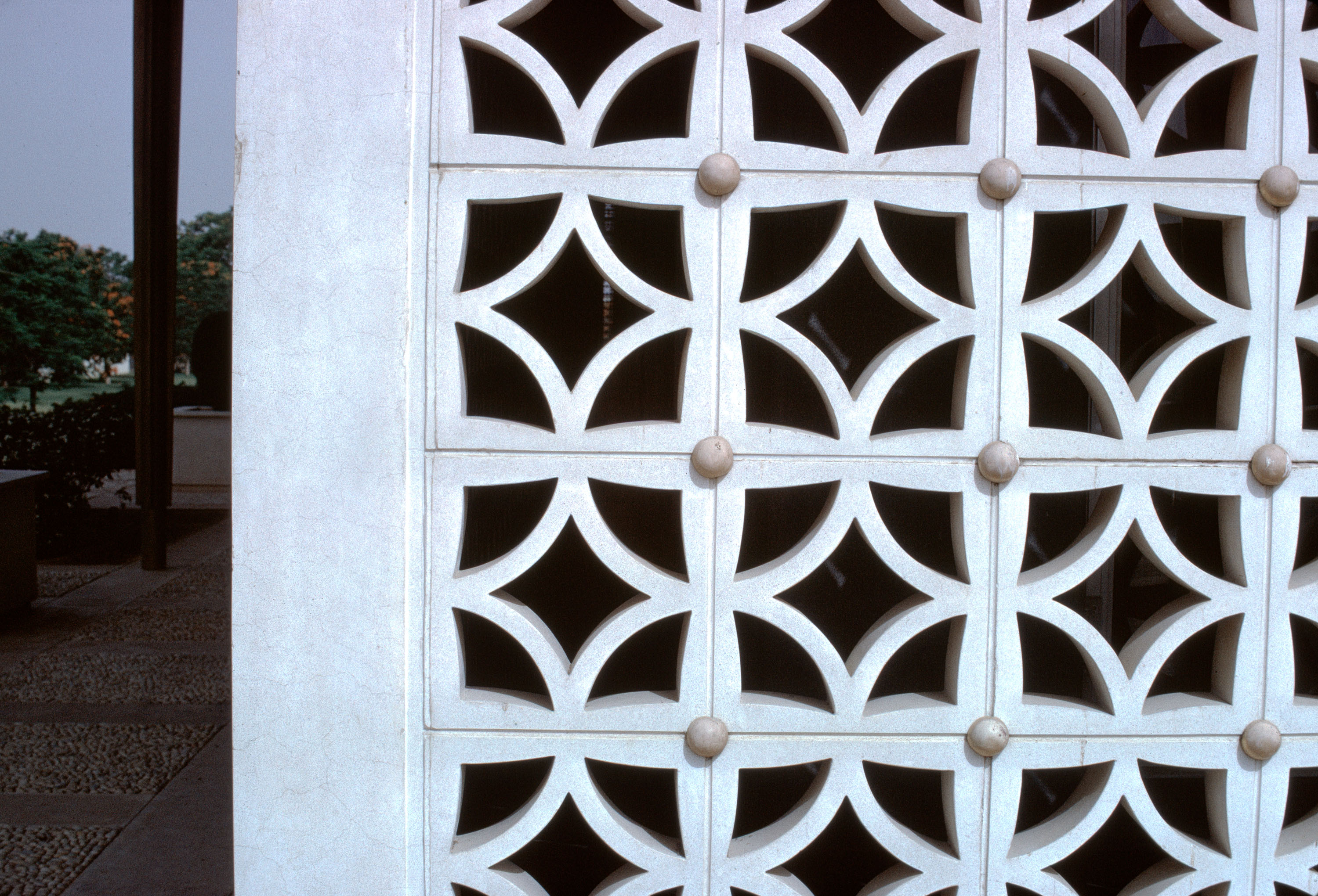 exterior, exterior decorative screen, detail, 1966 Shanti Path, Chanakyapuri, New Delhi 110021