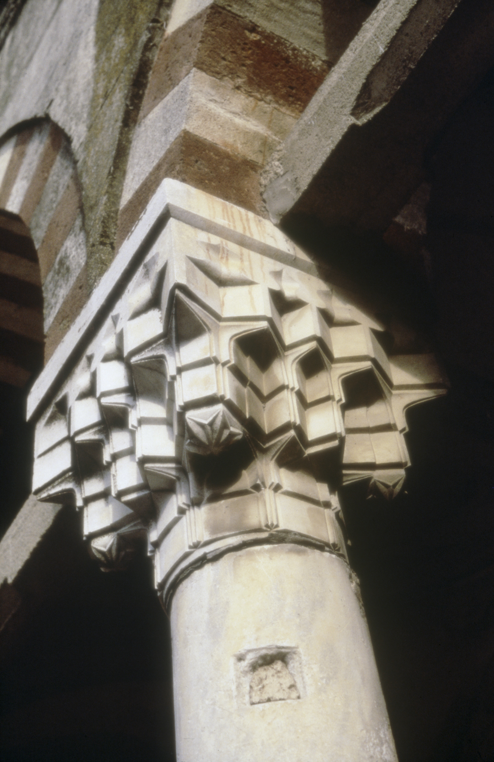 exterior, detail of a muqarnas capital in the courtyard arcade, ca. 1987