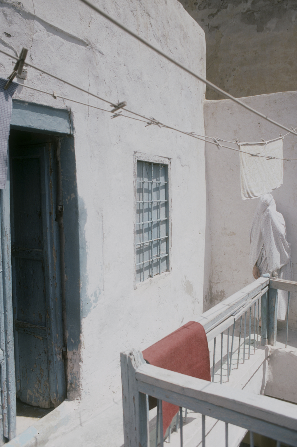 general view, small house on Hara al-Kabir Street in the medina, view along an upper level walkway of the courtyard, August 1994