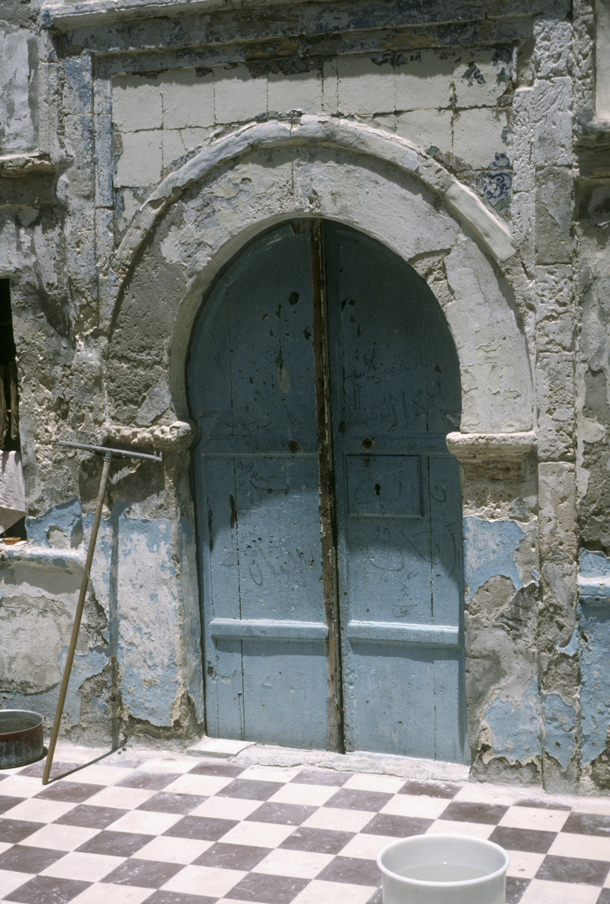 detail, house on Gos al-Mifti Lane in the medina, detail of an arched doorway in the courtyard, August 1994