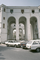 exterior, view of the northeast facade, with the cathedral partially visible through the open central court, August 1994