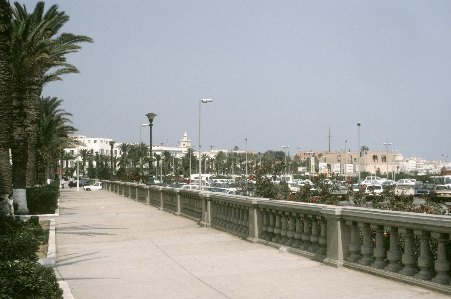 general view, eastern seafront on Sharia Al-Fatah, one of several major streets that was part of the 1930s colonial master plan; view of park, August 1994