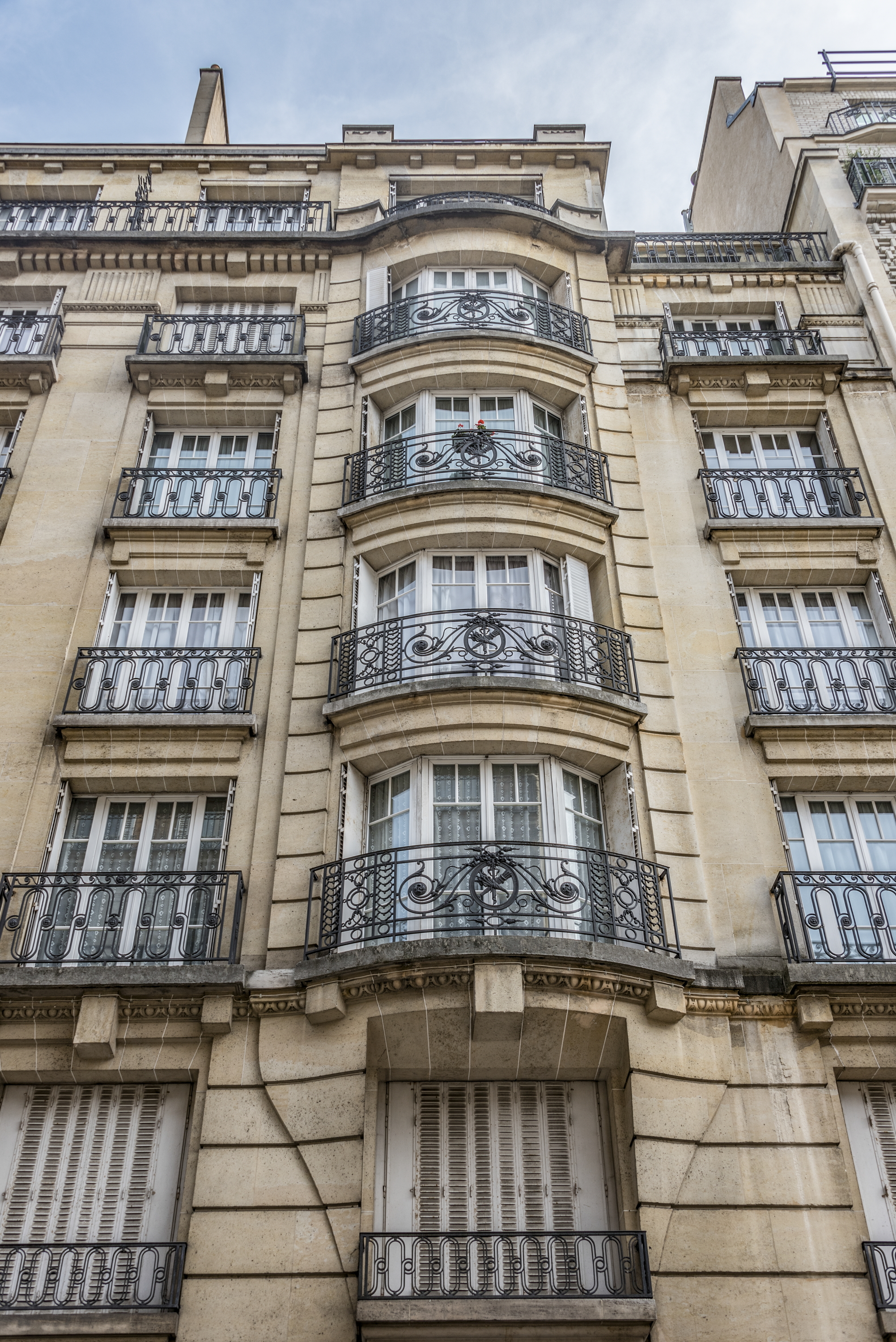 general view, building on Rue de la Fontaine with juliet balconies, 2017