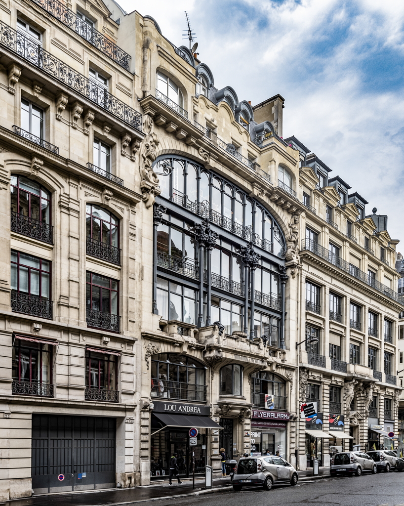 exterior, cast iron building facade on Rue Réaumur, 2017