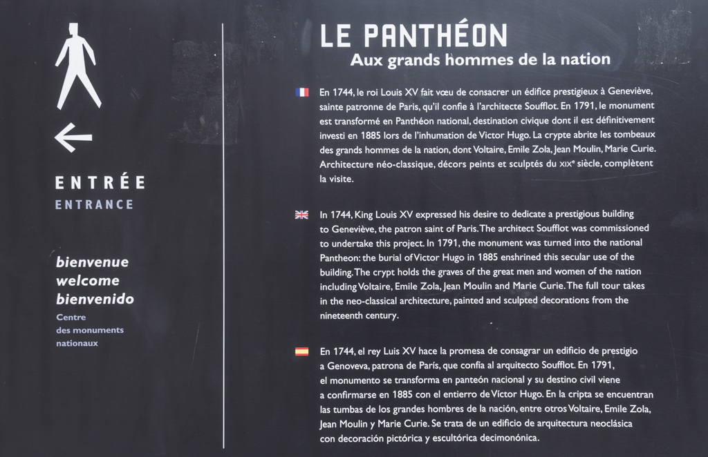 general view, informational panel, 2017 Place du Panthéon, 75005 Paris, France