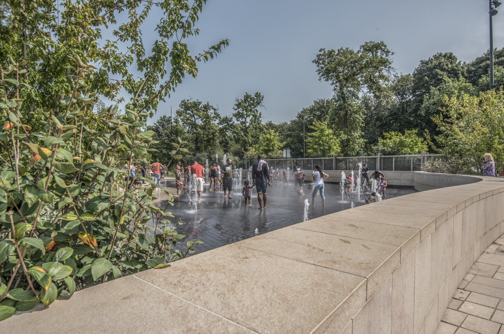 general view, visitors enjoying the Fontaine Sèche (Dry Fountain), 2017 Bois de Boulogne, Route de la Porte Dauphine à la Porte des Sablons, 75116 Paris, France